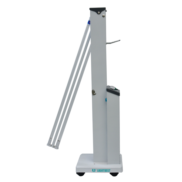 Los carros móviles de desinfección UV Lightbest se instalan con lámparas UVC dobles rectas de 2 * 30 W. Cuando necesite esterilizar con rayos ultravioleta de 253,7 nm u ozono, puede encender el esterilizador y encender las lámparas uvc, y después de la esterilización puede apagar el esterilizador. El brazo de la lámpara se puede empujar hacia el interior de la carcasa de la lámpara para ahorrar espacio y proteger la lámpara. El brazo de la lámpara se puede girar de 0 a 180° para esterilizar de manera más eficiente y está diseñado con un temporizador que puede configurar de 0 a 120 minutos para Esterilización, y es ampliamente utilizado para esterilizar hospitales, hoteles, oficinas, gimnasios, cines, talleres de fábricas y escuelas, etc.